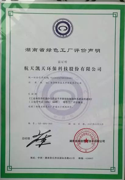会上,通博TBET环保总裁叶明强在主席台上与湘潭大学、山河智能签约,共同推进《工业废气治理装备绿色制造关键工艺系统集成项目》,成为湖南省首批环保装备绿色制造典范。并荣获省经信委颁发的省级第一批“绿色工厂”荣誉称号。