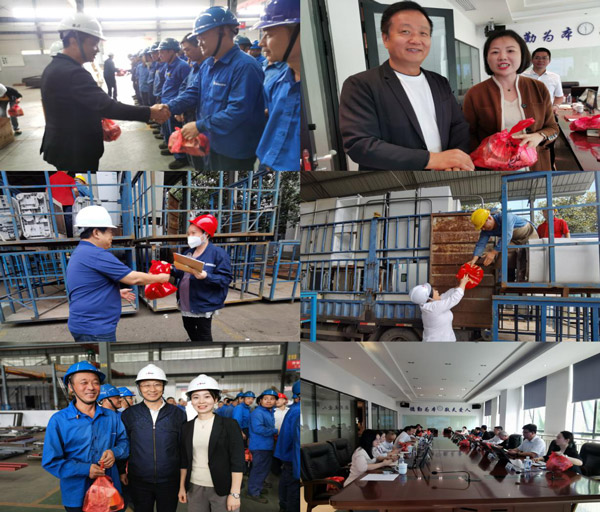 2021年10月7日,湖南航天副总经理,通博TBET环保党总支书记、董事长宋卫武、总裁姜晖,副总裁曾毅夫、党总支副书记刘素琴等一行分别来到环保装备事业部、生态环境事业部、株洲凯天等单位,慰问了国庆假期仍坚守在工作岗位和持续奋战在一线的工作人员,并将精心准备的慰问品分别送到他们手中。