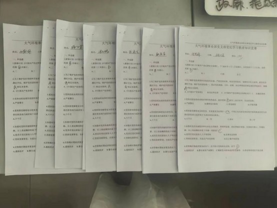 大气环境党支部以试卷答题的形式开展知识竞赛活动,通过答题使党员干部职工对党纪法规的要求有了更深刻的认识和再学习。
