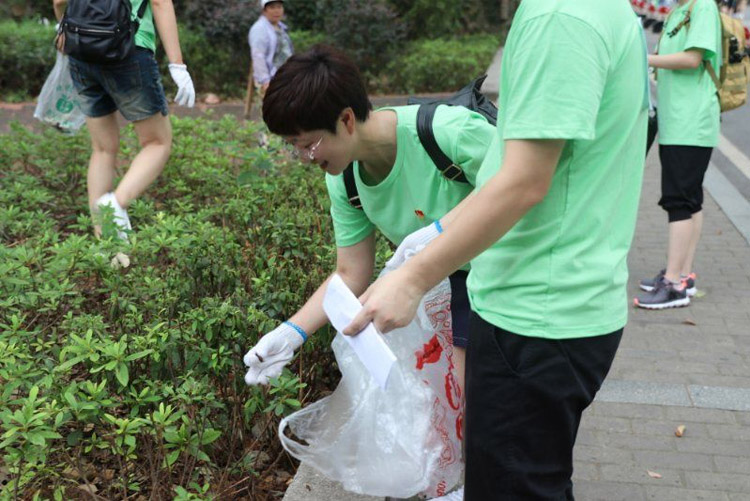 岳麓山主干道非常整洁,鲜有垃圾看到,而丛山、灌木中却纸皮、瓶子、烟头等垃圾零星散落其中。净山分队成员快速进入了角色,或单独,或三三两两,很快消失在树林里。有的队员为此次活动还准备了专业工具;有的在花园、树底下迅速发现被乱丢的废物;有的徒手爬到陡峭缝隙间去捡拾;有的把被遗弃没喝完的矿泉水倒完再收纳;有的沿着石阶一个阶梯一个阶梯爬,边爬边捡…… 做捡拾垃圾,这项看似简单的动作,在38°的高温天气里,也变得不容易,队员们尽管汗流浃背,气喘吁吁,还是特别认真,连地上小小的烟蒂都不放过,大家都在用实际行动履行“垃圾不落地,环境更美丽”的企业社会责任。在到达活动终点爱晚亭时,五个组捡拾的垃圾堆成了小山包。看着干净整洁的环境,每个人都露出开心的笑容,也赢得了旅游观光者的赞许目光。活动结束,选出了本次净山成果显著的前三名进行奖励。